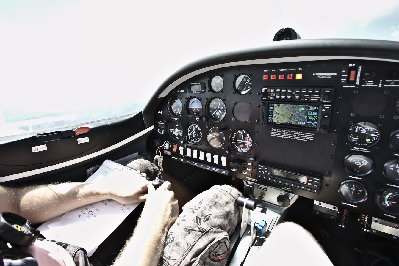 Motiv: “Checkliste”. | Bildgestaltung: “Dem Piloten über die Schulter schauen”. | Licht: S. u. | Postprecessing: Darktable. Ursprünglich unterbelichtet, konnte nach Exposure- und Brightness-Anpassung eine Shadows- und Highlights-Korrektur zufriedenstellend durchgeführt werden.